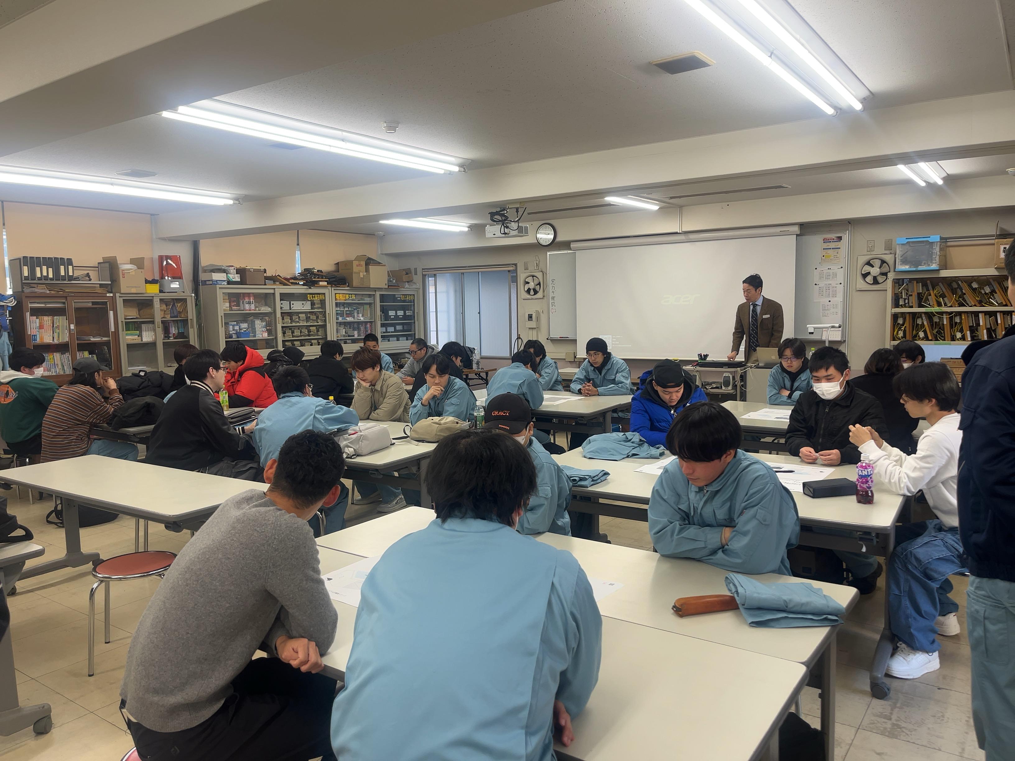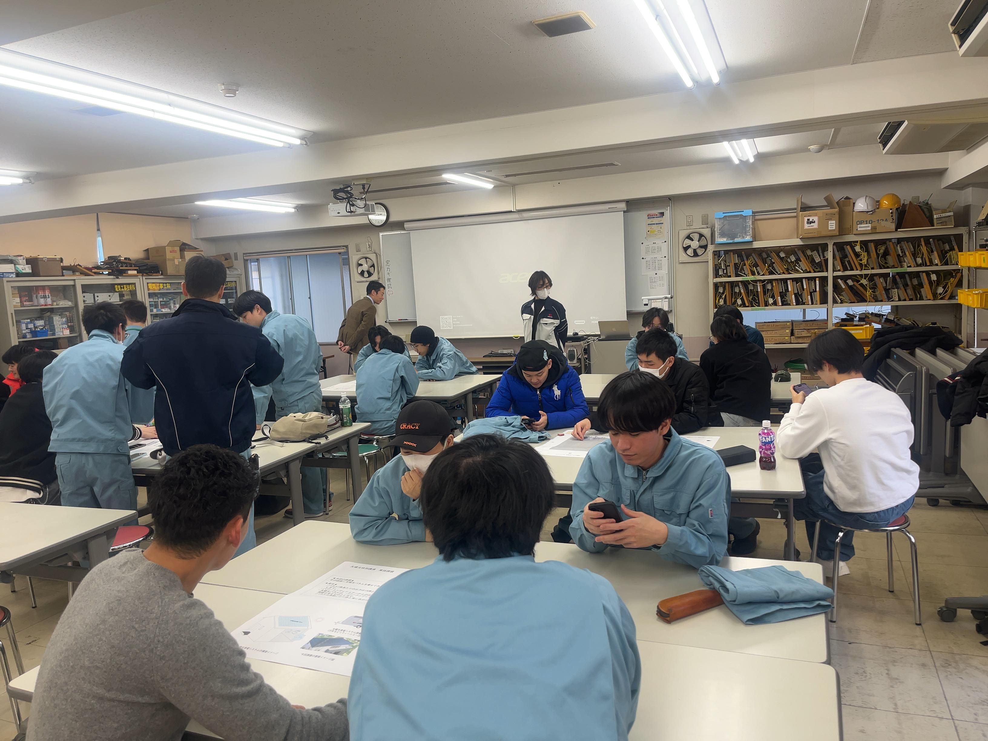 令和8年1月9日には、日本電子専門学校で太陽光発電パネルの配置を考える実習授業に協力しました。