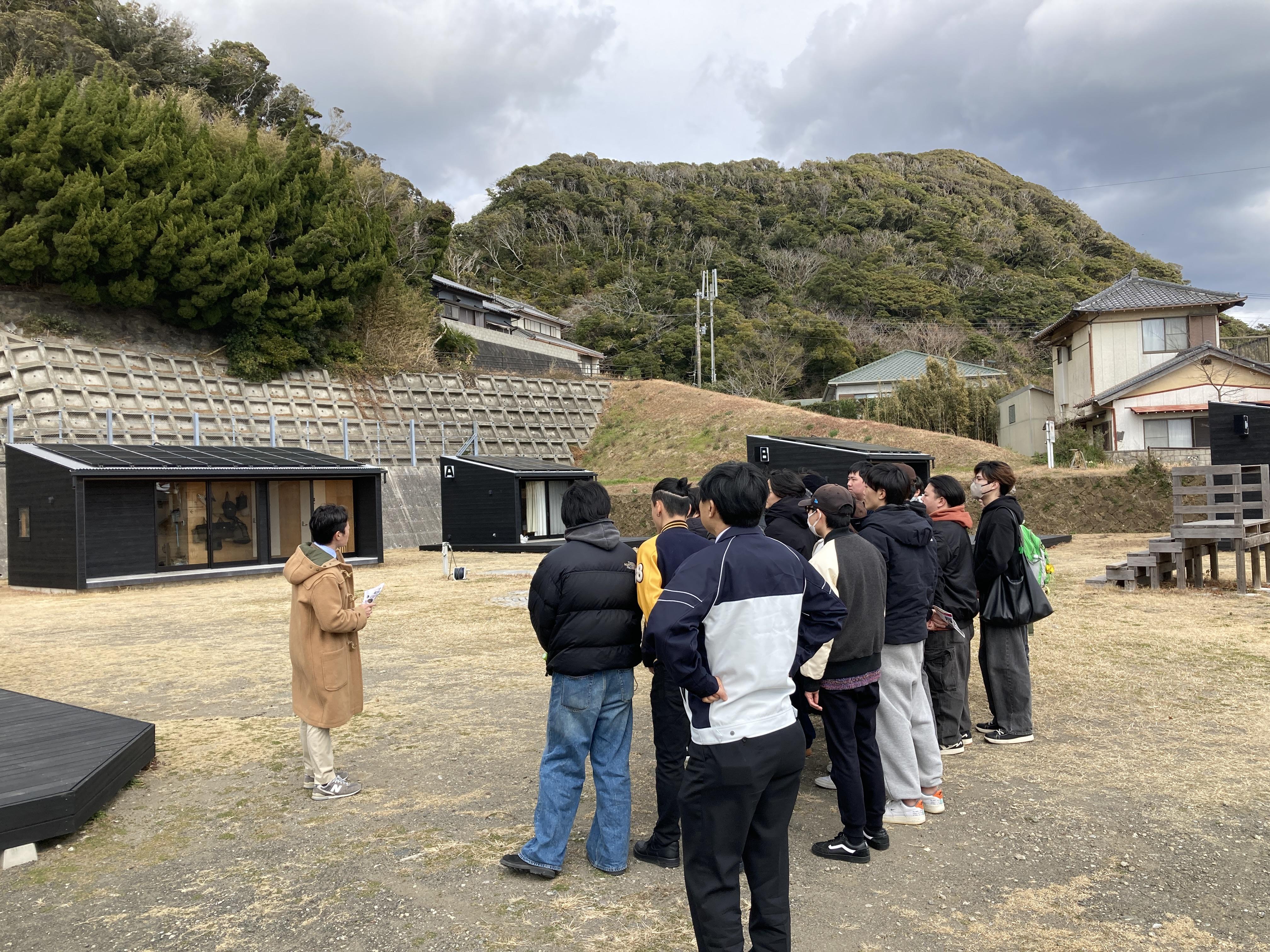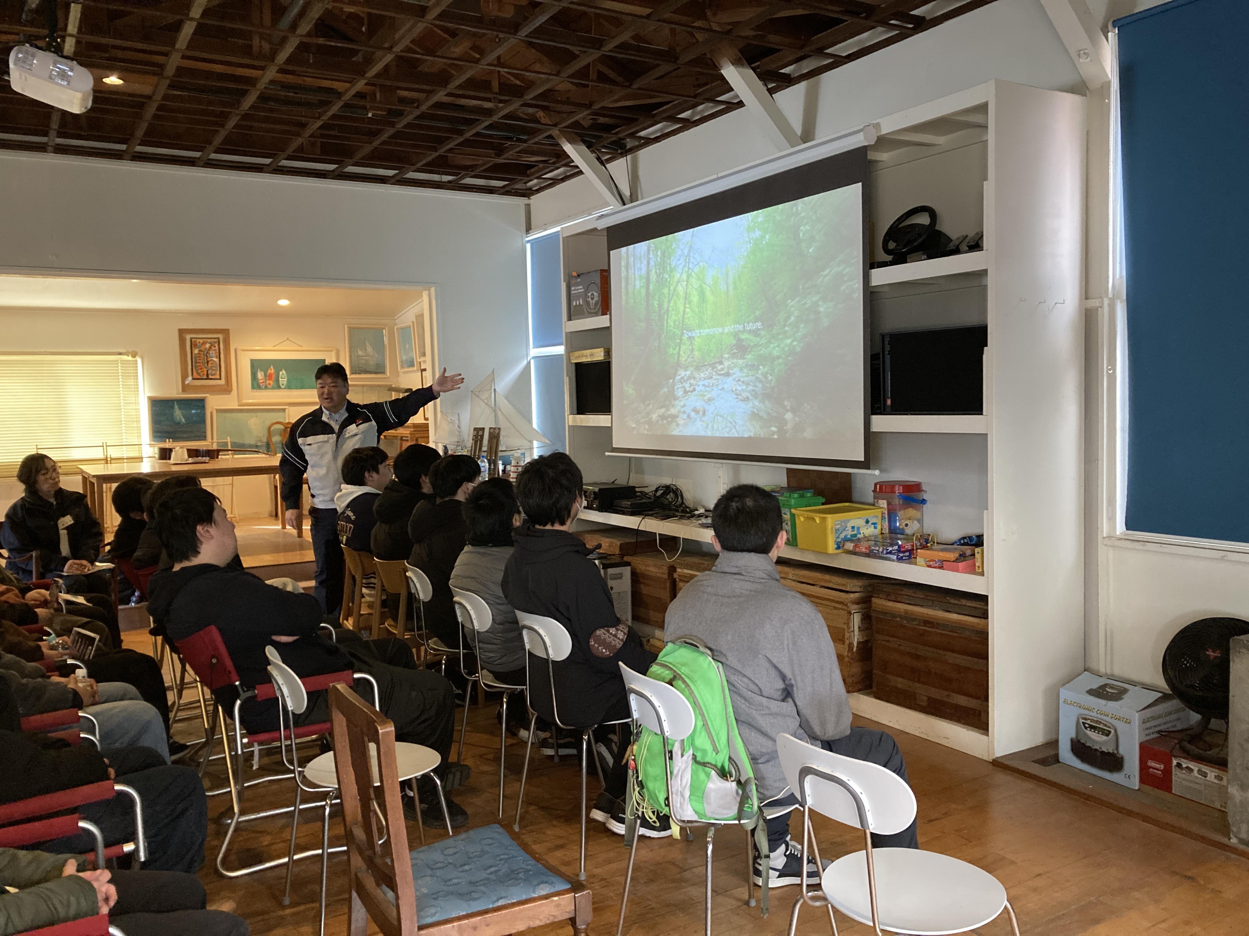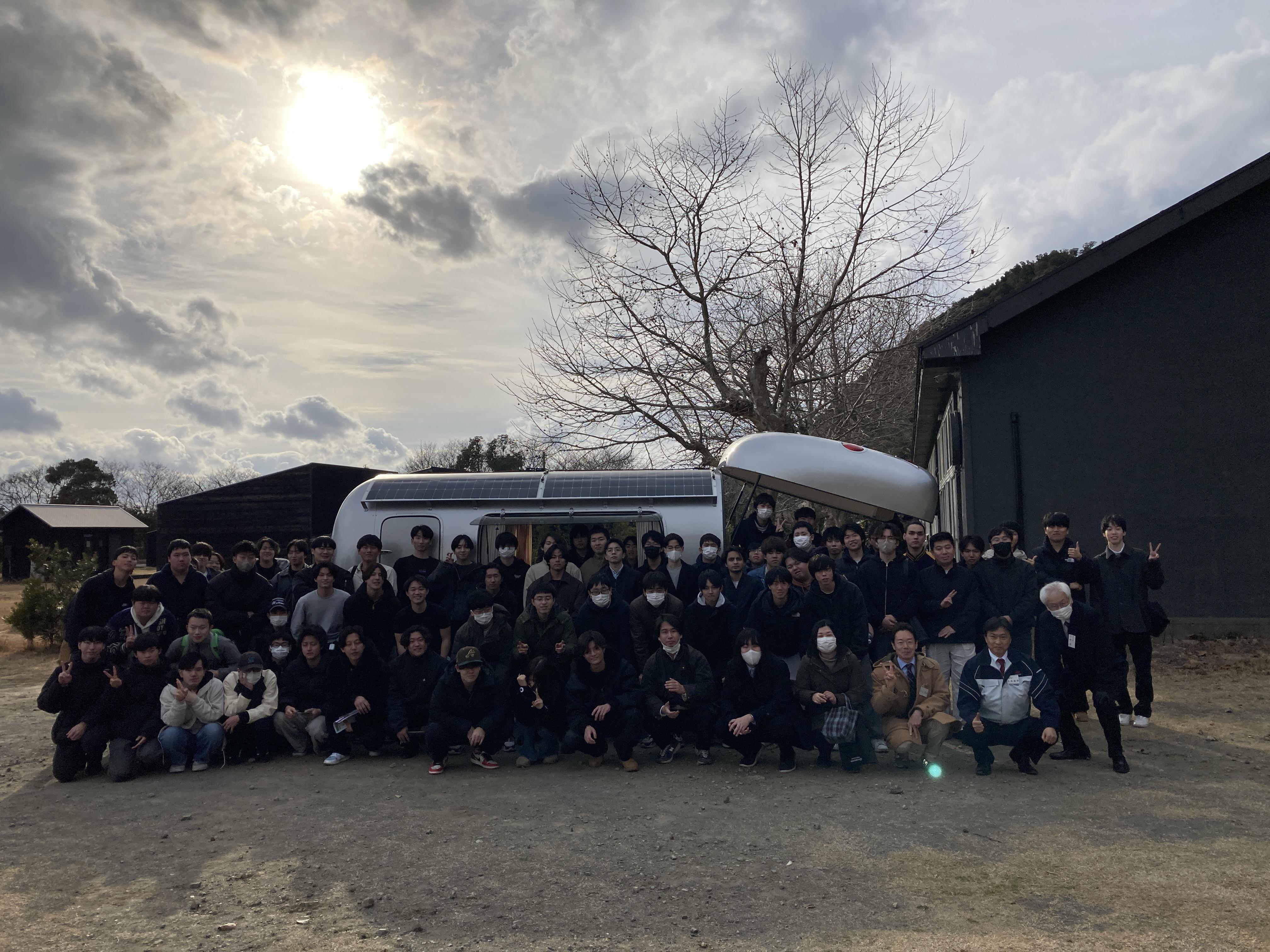 令和8年2月10日、弊社がオフグリッド設計を行う廃校活用施設「シラハマ校舎」にて、日本工学院専門学校の学生約90名を迎えた課外学習を実施しました。